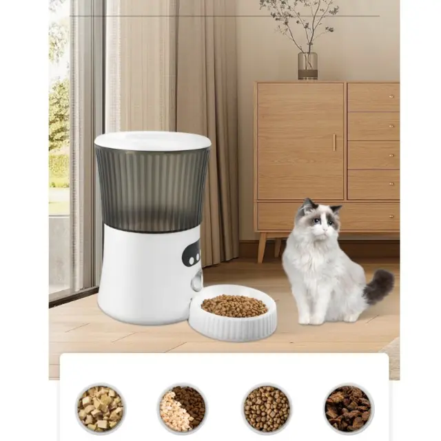 Velika prostornina 6 l: S prostornino 6 l in vizualno posodo za shranjevanje ta pametni avtomatski podajalnik za hišne ljubljenčke zmanjša pogostost polnjenja in olajša preverjanje zalog na prvi pogled. Vrtljiv pokrov odpiranja ohranja brikete varne in dostopne, prozorna zasnova posode pa omogoča enostaven pregled preostale hrane. Prostornina 6 l zadostuje za več dni hranjenja majhnih do srednje velikih hišnih ljubljenčkov, kar je priročno za vikend izlete ali naporne delovnike, ko potrebujete zanesljiv avtomatski podajalnik brez nenehnega polnjenja.