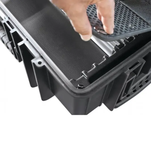 Kovček je izdelan iz robustnega polipropilena, ima pa tudi plinske vmzeti , ki držijo pokrov v različnih položajih in preprečujejo samodejno zapiranje. Tako se zmanjša možnost poškodb prstov in drugih poškodb.