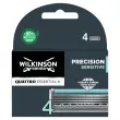 Opakowanie zawiera 4 zapasowe ostrza do maszynki Wilkinson Sword Quattro Essential 4 Precision Sensitive.