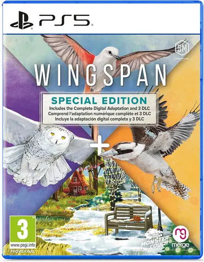 Wingspan je sproščujoča in nagrajena strateška igra s kartami o pticah za 1 do 5 igralcev. Vsaka ptica, ki jo igrate, podaljša verigo močnih kombinacij v enem od vaših treh habitatov. Vaš cilj je odkriti in privabiti najboljše ptice v svojo mrežo naravnih rezervatov. Ta izdaja vsebuje osnovno igro Wingspan in 2 razširitvi: Razširitev za Evropo in Razširitev za Oceanijo, ki igri dodata nove vznemirljive karte ptic, pooblastila in mehaniko.
