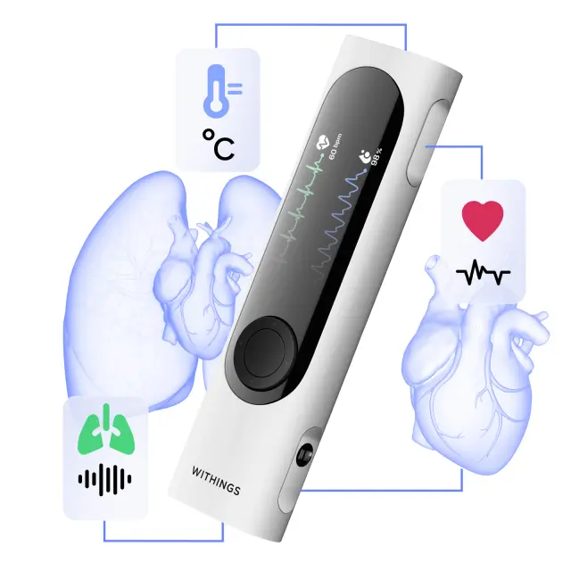 Withings, Termometer 4 v 1 z EKG, oksimetrom in stetoskopom 8 mesecev delovanja baterije, Bela
