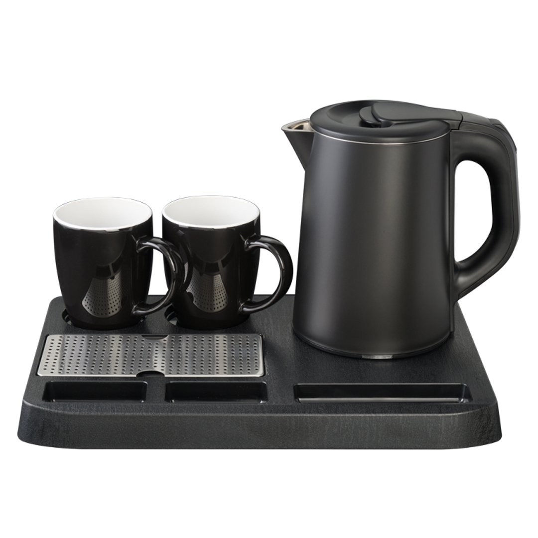 Set električnega grelnika za vodo, z dvema keramičnima lončkoma in pladnjem je popolna kombinacija elegance, funkcionalnosti in udobja, ki bo obogatila vaše trenutke uživanja v toplih napitkih. Oblikovan je z mislijo na udobje ter vam omogoča enostavno pripravo in serviranje vaših najljubših napitkov. Glavni del seta je grelnik za vodo s prostornino 0,8L, ki s svojim kompaktnim dizajnom (visokokakovostno ohišje z dvojno steno iz nerjavečega jekla, zunanjost iz PP- ostane hladna na dotik) in zmogljivostjo zagotavlja hitro segrevanje vode. Opremljen je s funkcijo samodejnega izklopa po dosegu želene temperature, kar pripomore k varnosti in energetski učinkovitosti. Ima stikalo za vklop/izklop in indikatorsko lučko. Očistite ga z vlažno krpo. Set dopolnjujeta še dva keramična lončka s prostornino 300 ml in črn ABS pladenj. Ta je funkcionalen dodatek, ki omogoča enostavno prenašanje lončkov in grelnika, obenem pa ustvarja urejen in privlačen element. Set je odlično darilo ali pa preprosto izjemen dodatek k vaši kuhinji. Tehnični podatki: 220 V, 50 Hz, 1360 W / Garancija: 2 leti.