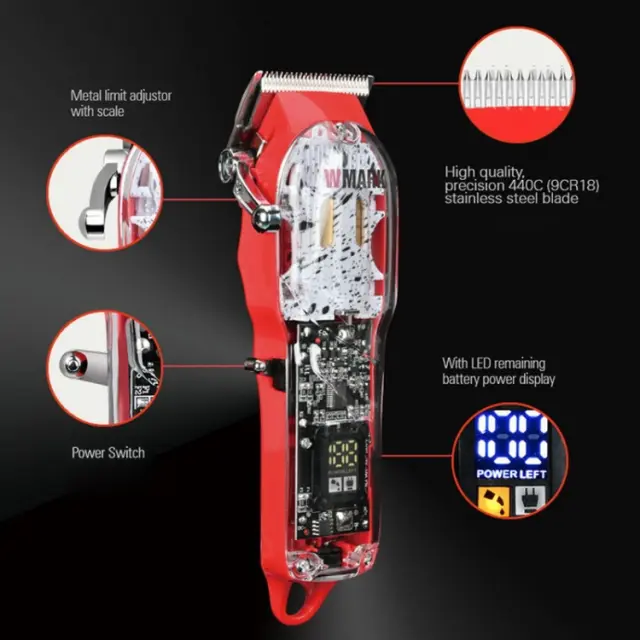 WMark NG-409 Prozoren strižnik za lase Brezžični strižnik za lase z LED zaslonom, EU vtič