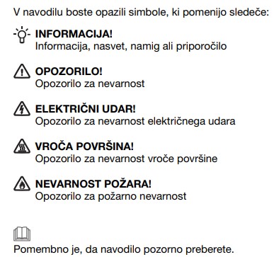 Slike o varnosti izdelka vsebujejo opozorila na embalaži izdelka in lahko vključujejo ključne varnostne informacije, povezane z določenim izdelkom.