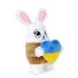 Zajček v svojih tačkah drži rumeno-modro srce, ki je utelešenje predanosti in hvaležnosti do svoje države.