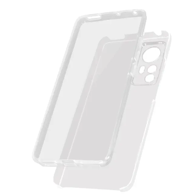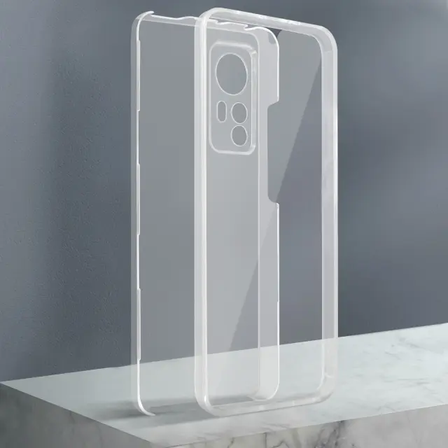 Prozoren etui Xiaomi 12 in 12X. Ta vsestranska 360-stopinjska zašcita ima trdo zadnjo stran iz polikarbonata, odporno na udarce, in nezlomljivo sprednjo stran iz polimera, ki pokriva zaslon in stran telefona.