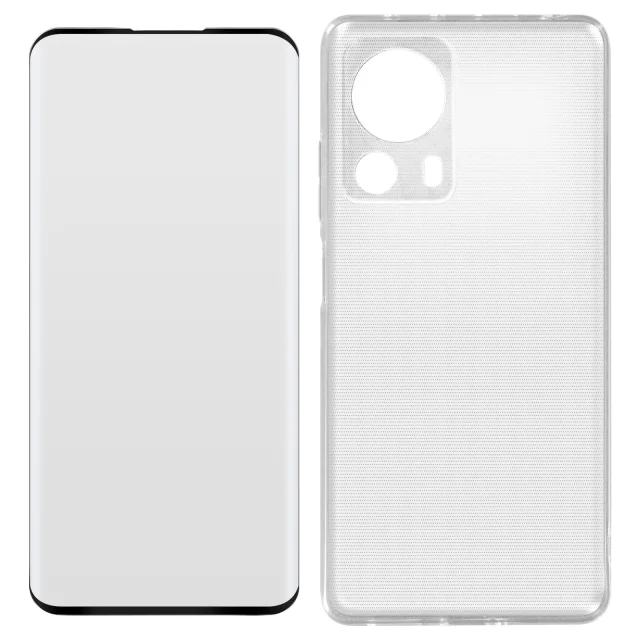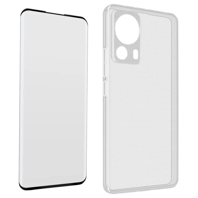 Xiaomi 13 Lite 360° Protection Pack: mehka torbica iz crnega konturnega kaljenega stekla