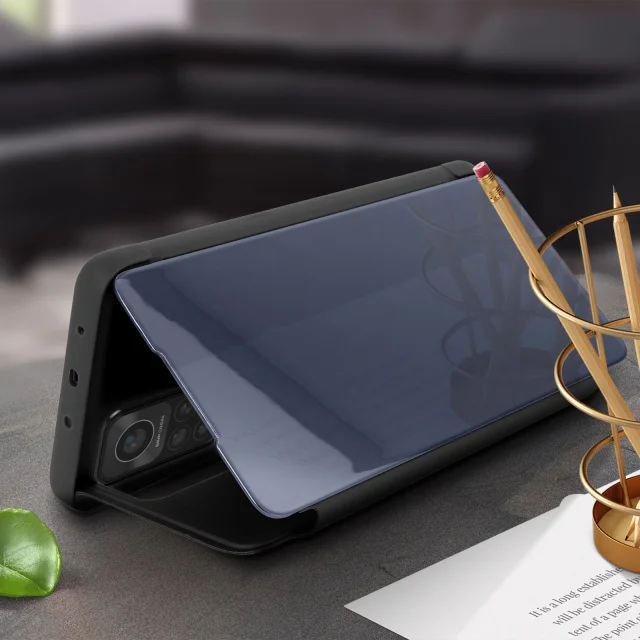 Xiaomi Mi 10T / Mi 10T Pro Ultra-thin Mirror Folio Case, funkcija stojala - crna