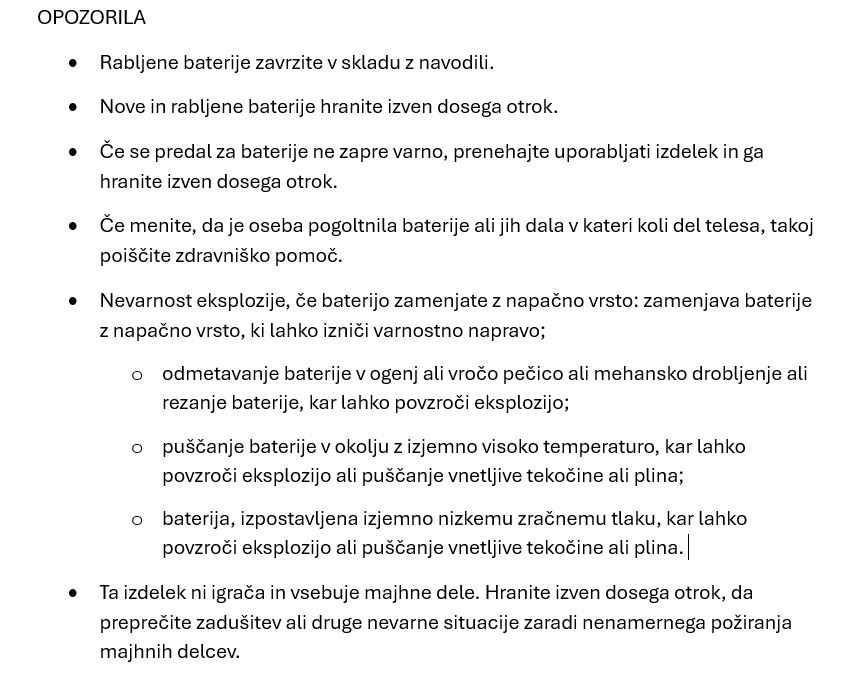 Slike o varnosti izdelka vsebujejo opozorila na embalaži izdelka in lahko vključujejo ključne varnostne informacije, povezane z določenim izdelkom.