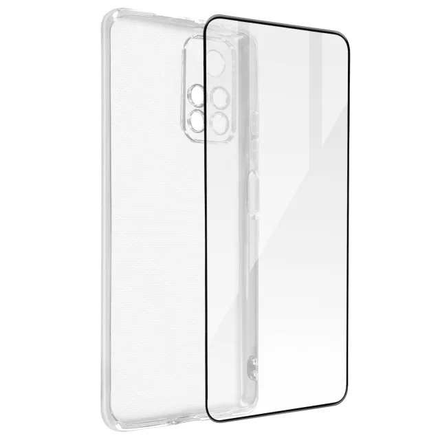 Xiaomi Poco M4 Pro 5G / Xiaomi Redmi Note 11S 5G 360° Protection Pack: ovitek iz mehkega silikonskega gela, kaljeno steklo, obris crn - prozoren