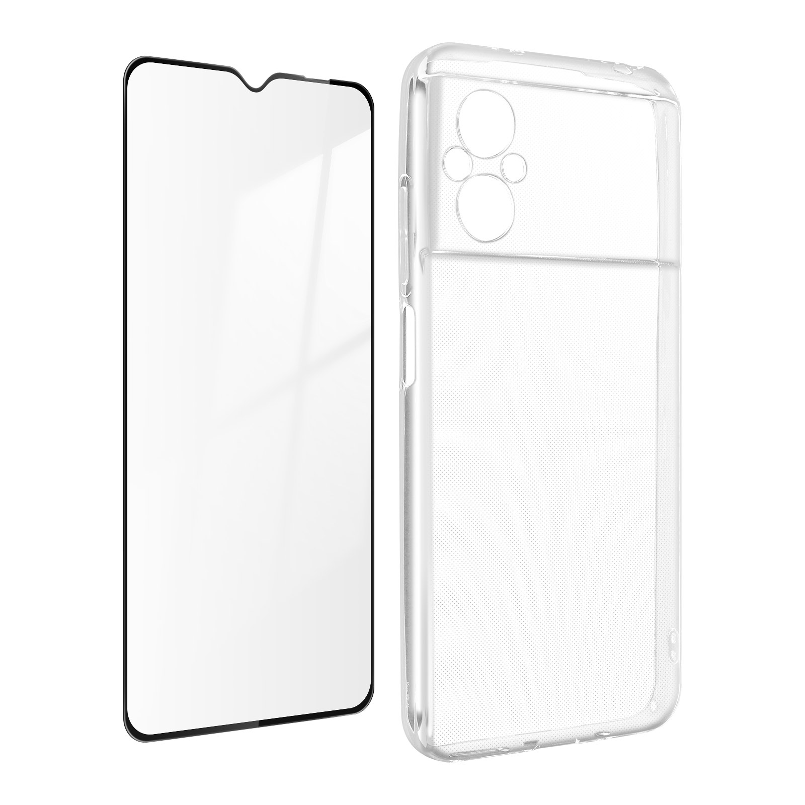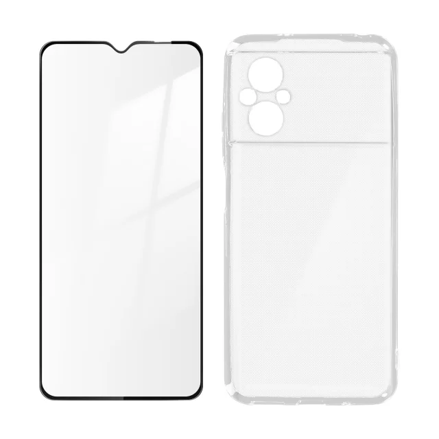 Xiaomi Poco M5 360° Protection Pack: tanek ovitek iz mehkega kaljenega stekla, crn okvir