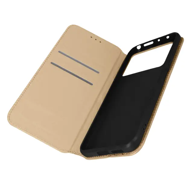 Etui posebej oblikovan za Xiaomi Poco X4 Pro 5G - zlat. Popolna in učinkovita zaščita pred vsakodnevnimi padci in praskami. Ovitek iz ekološkega usnja z vidnimi šivi daje vašemu pametnemu telefonu eleganten pridih. Dodatno držalo za kartico v ohišju za optimalno uporabo.