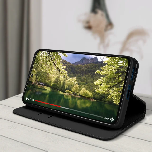 Xiaomi Poco X4 Pro 5G etui z držalom za kartice in stojalom za video, magnetni preklop - crn