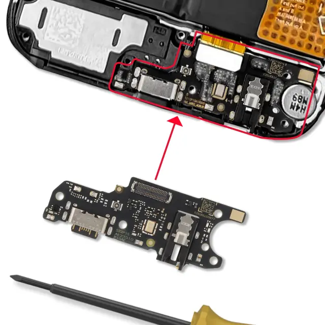 Originalni polnilni priključek USB-C Service Pack, združljiv z Redmi 15C in Poco C85 4G za zamenjavo okvarjenega polnilnega priključka. Obnovi polnjenje pametnega telefona in povezavo USB za prenos podatkov in sinhronizacijo. Vključuje bistvene elemente spodnjega modula, vključno s priključki za mikrofon in vtičnico, odvisno od konfiguracije telefona.. Nadomestni del je zasnovan za zanesljivo popravilo, kadar je vhod USB-C obrabljen, zrahljan ali se ne polni več pravilno..