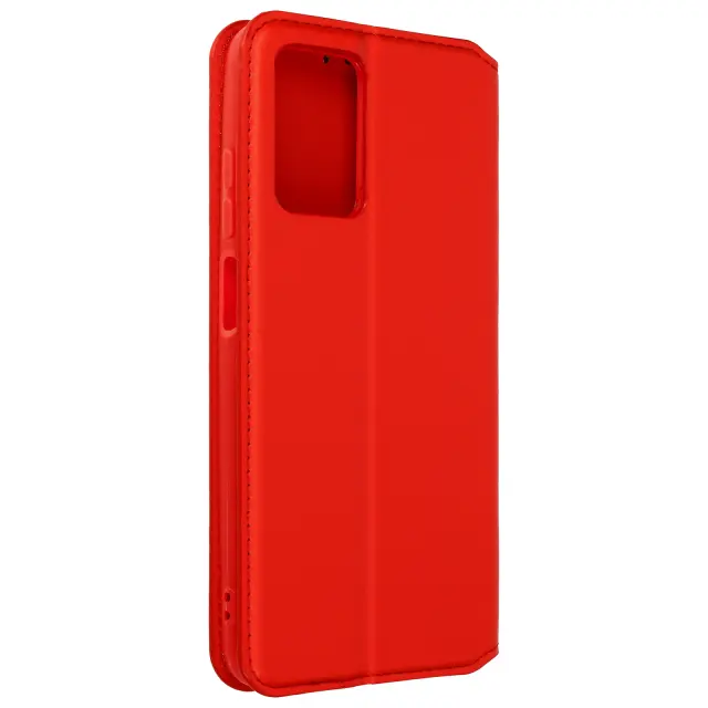 Ovitek Xiaomi Redmi 10 in 10 2022 rdec. Ta etui ima predelke za shranjevanje kartic v preklopni podlogi in trdno, prožno silikonsko gelno ohišje. Deluje tudi kot vodoravna podpora za ogled vaših videoposnetkov.