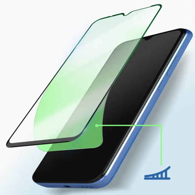 Prosojno steklo Xiaomi Redmi 10A ustvarja nepremostljivo oviro med zaslonom ter udarci in praskami. To kaljeno steklo je popolnoma lepljivo za enostavno namestitev. Ta zaslonska folija je narejena po meri in ima crn poševni rob.