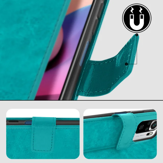 Xiaomi Redmi Note 10s in Note 10 Folio Case Držalo za kartice in stojalo za video Serija Vintage - turkizna