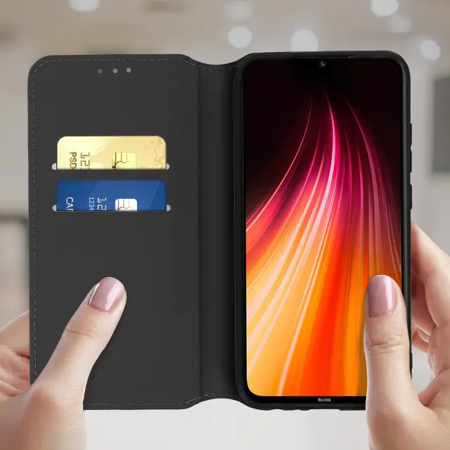 Prilagodljiv zaščitni ovitek, izdelan posebej za vaš Xiaomi Redmi Note 8. Učinkovito zaščiti vašo napravo pred udarci, praskami iz dneva v dan. Izkoristite namenske predelke za shranjevanje kartic. Funkcija podpore Horizon za udoben ogled vaših fotografij in videoposnetkov.