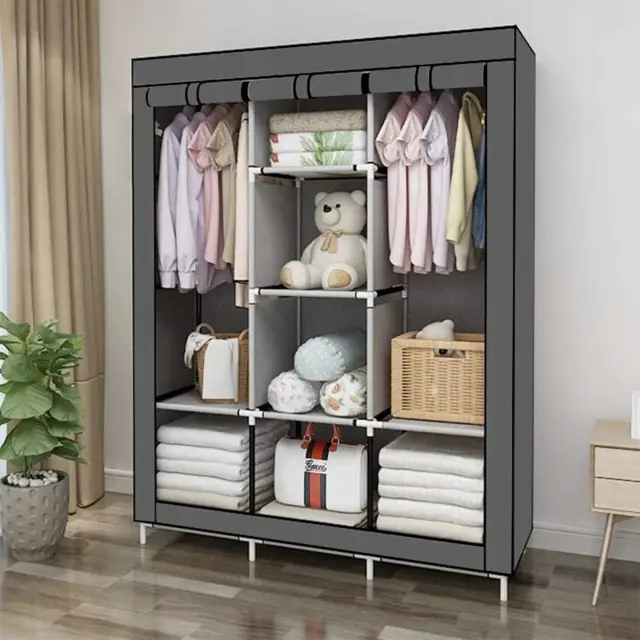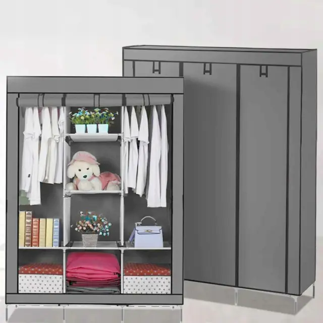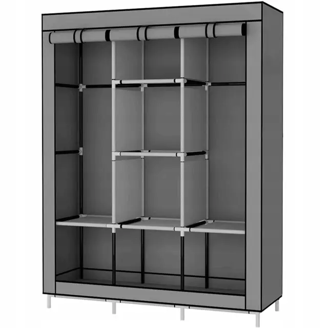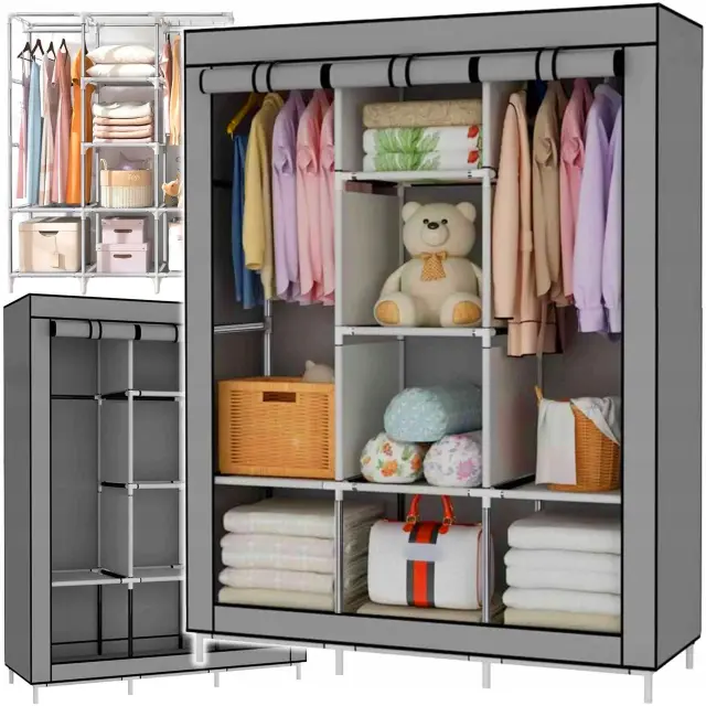 XL prenosna omara s policami za oblačila 167cm s pokrivalom siva