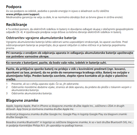 Za več informacij o splošni varnostni uporabi in načinu uporabe: - Philips podpora: https://www.philips.si/c-w/podpora - ali na spletnem mestu artikla: https://www.philips.si/c-p/XP9403_31