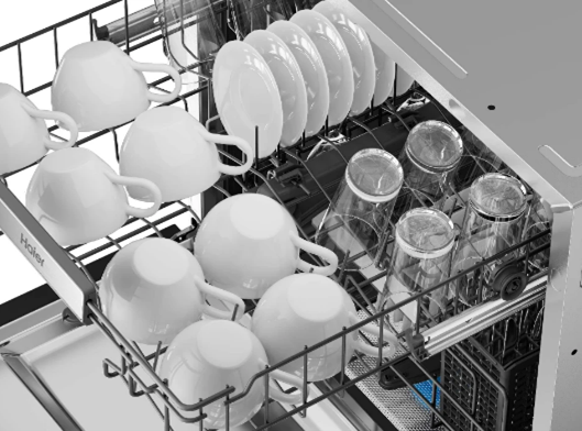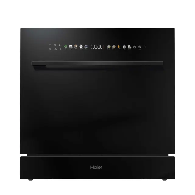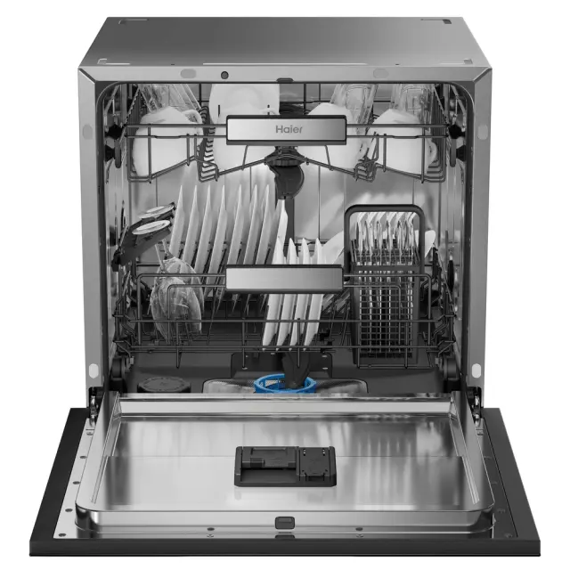 Vgradni pomivalni stroj Haier Wall In XPI 8D9FFB je zasnovan za popolno čiščenje in eleganco. S črnim steklom in dimenzijami 60 × 60 cm se harmonično vključi v vašo kuhinjo ter poskrbi, da je vsako pomivanje brezhibno.