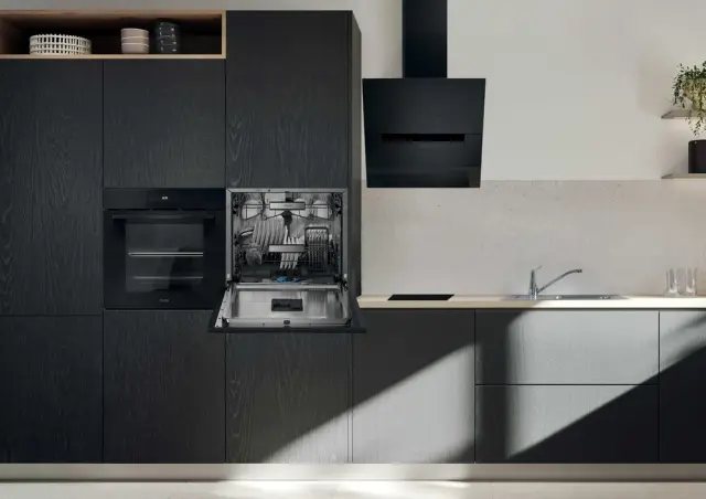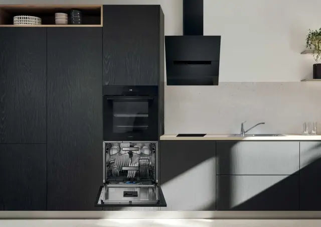 Zasnovan za prilagoditev vaši kuhinji: pomivalni stroj lahko namestite pod pult ali navpično oziroma vzporedno s pečico. Omogoča popolno svobodo postavitve in največjo prilagodljivost za vsak kuhinjski prostor, brez kompromisov pri slogu.