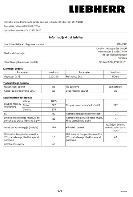 Podatki o proizvajalcu vključujejo informacije (naziv, naslov, državo in elektronski naslov) povezane s proizvajalcem izdelka.