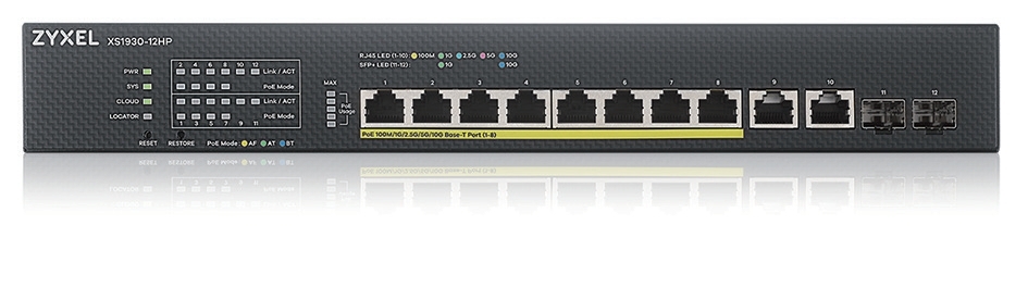 Zyxel XS1930-12HP, 8-port Smart Man.PoE+ switch (375W)