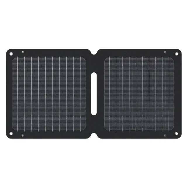 Ta sončna plošča ima dvojni priključek USB in USB-C za razširjeno združljivost z večino naprav.. 14W moč za hitro polnjenje mobilne opreme. Zložljiv in lahek, kot nalašč za prenašanje na potovanjih ali pohodih. Robustna zasnova za zunanje razmere in mobilno uporabo.