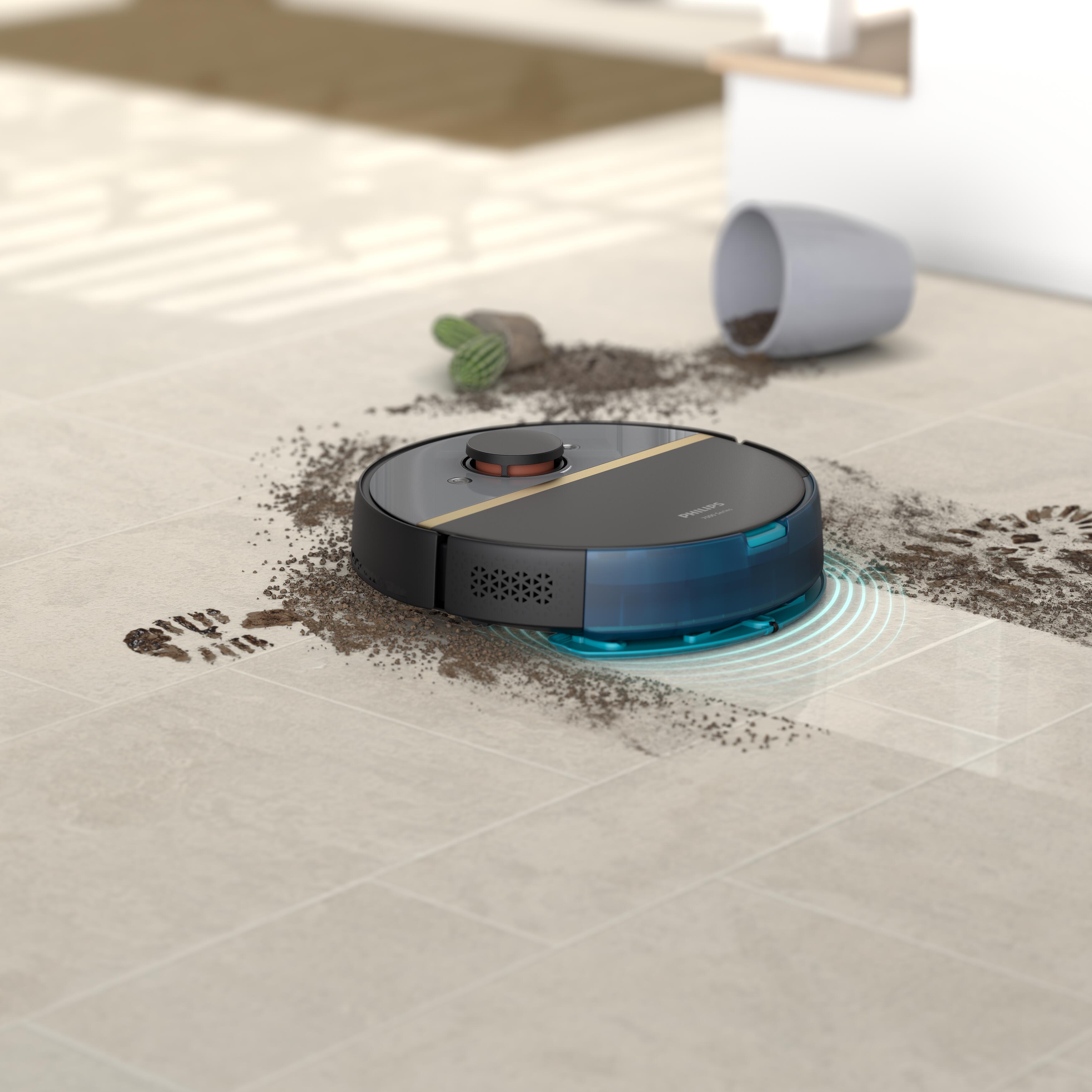 Robot sesa in mokro briše trda tla hkrati ter se loti fine plasti prahu, ki se vsakodnevno nabere na tleh. Odstrani več finega prahu kot samo sesanje, tako da bodo vaši podplati ostali čisti, tudi če naokoli hodite bosi.