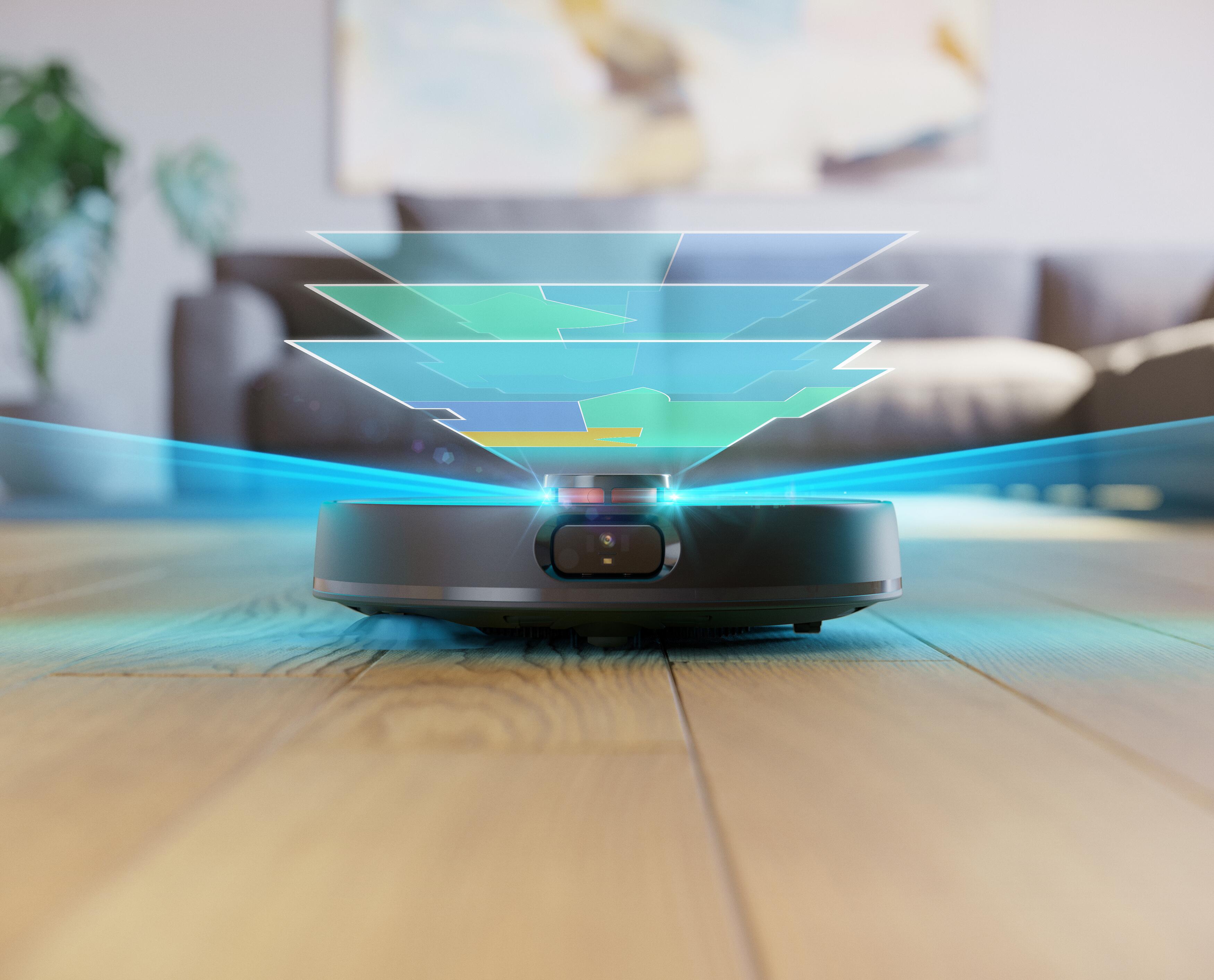 Ni vam treba preverjati, ali pot nima ovir, saj bo robot zaznal in se izognil majhnim predmetom na poti, kot so čevlji ali igrače, ter jih med čiščenjem obšel, ne da bi se vanje zataknil ali trčil. Najsodobnejši senzor 3D ToF, ki se nahaja na sprednji strani robota, lahko zazna predmete velikosti 2,0 x 2,0 cm (Š x V). Poleg tega 8 senzorjev ToF v sprednjem odbijaču neprekinjeno zaznava, kaj se nahaja pred robotom in ob njem. Senzorji delujejo tudi pri šibki svetlobi, zato vam ni treba prižigati luči, ko niste doma.