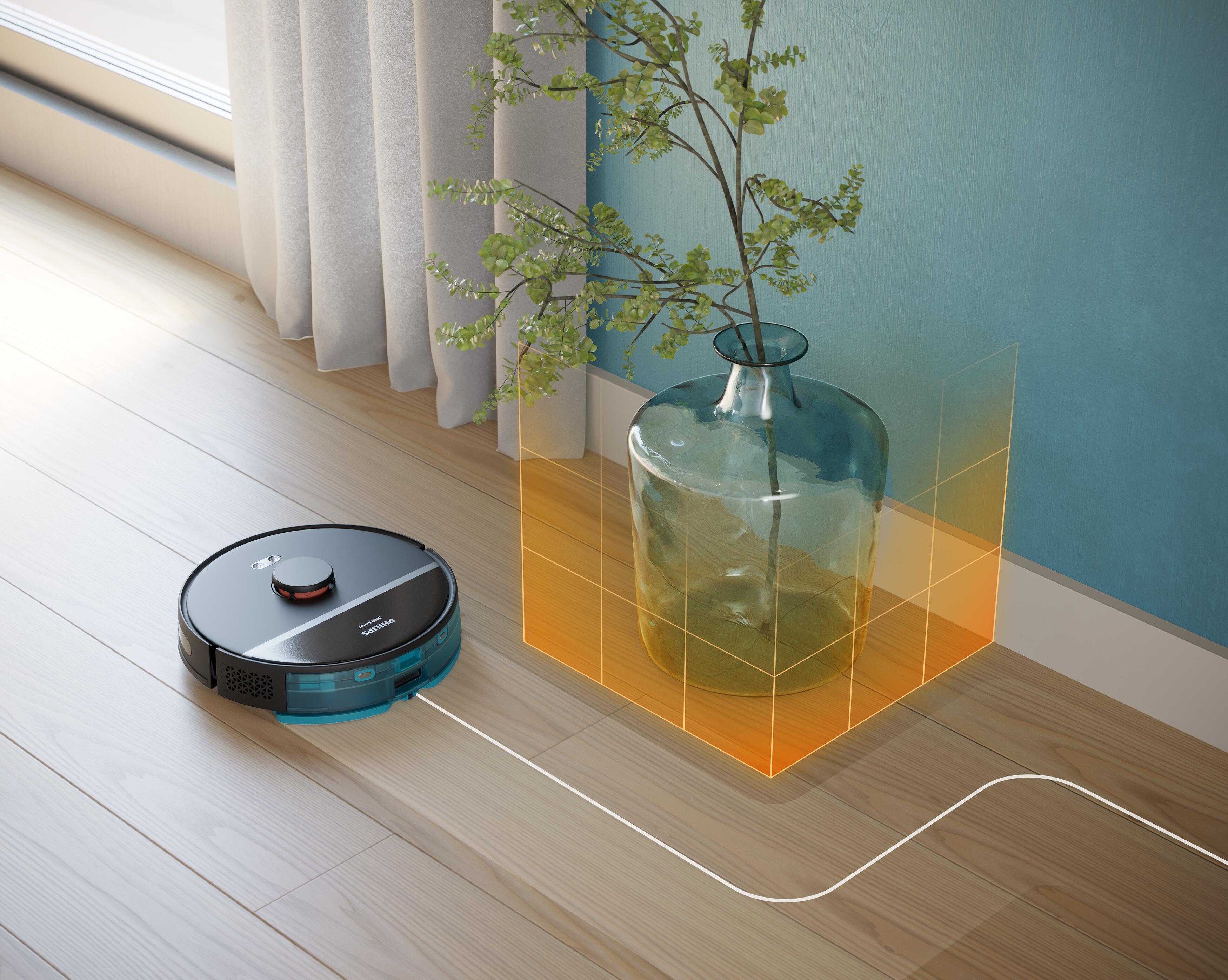 Robot z lasersko navigacijo 360° (LiDAR) pregleda vse prostore in v hipu ustvari natančen zemljevid. Ta zemljevid je interaktiven in ga lahko uporabite v aplikaciji Philips HomeRun, da ustvarite načrt čiščenja po meri za svoj domači prostor. Ustvarite in shranite do 5 nadstropij podrobnih zemljevidov za svojo hišo. Pametni algoritmi pomagajo robotu najti najučinkovitejšo pot iz prostora v prostor in okoli pohištva, hkrati pa ta doseže vse vogale in se približa stenam, tako da ne izpusti nobenega območja.