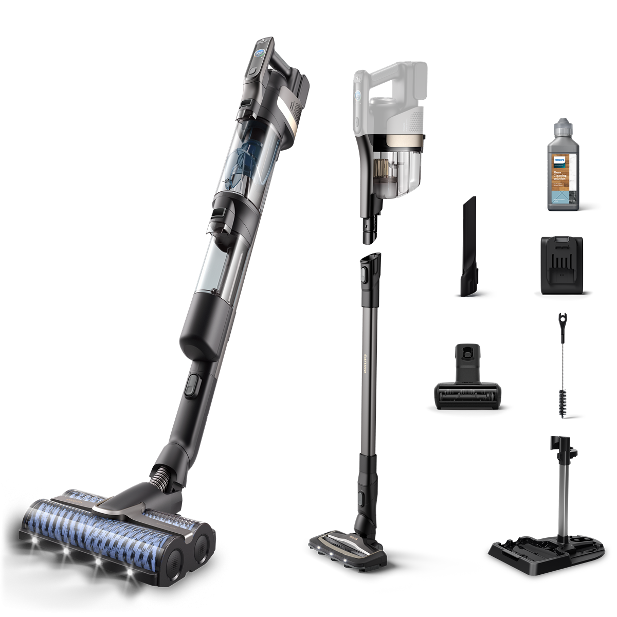 Preprosto preklapljanje med sesanjem s pomivanjem, samo sesanjem in ročnim sesalnikom glede na površino in potrebno čiščenje. Komplet samo za sesanje je mogoče uporabljati, ko pomivanje ni potrebno, npr. za čiščenje preprog ali hitro sesanje po potrebi. Kompletu ročnega sesalnika sta priložena dva nastavka za čiščenje tekstilnih površin, pohištva, površin podstavkov in kotov na stropih.