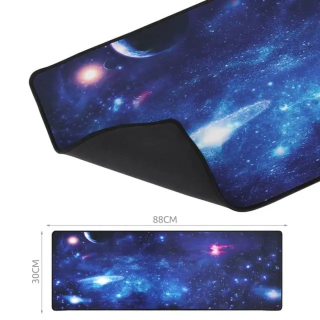 Podloga z dolžino 88 cm je popolna tako za igričarje, kot za pisarno, zasnovana z mislijo na udobje! Priemrna za tipkovnico in miško. Njena velikost tudi ščiti mizo pred poškodbami. Podloga ima na dnu nedrseč material, zato ni bojazni, da se bo premaknila in motila pri delu, ali da vam bo roka zdrsnila v pomembnem trenutku med igro. Zgornji del podloge je gladek in ne blokira gibov, ravno nasprotno! Zagotavlja trenje, potrebno za "občutek" gibanja miške. Deluje z optičnimi in laserskimi miškami. Material, iz katerega je izdelana podloga, jo naredi vodoodporno. Ne vpija nobenih tekočin, razlita pijača ostane na njej v obliki »luže«, dovolj je, da vzamete krpo in jo obrišete. Okoli Podloge je debel šiv, ki pritrjuje material in preprečuje, da bi se podlogla trgala. To bo omogočilo veliko daljše obdobje uporabe.