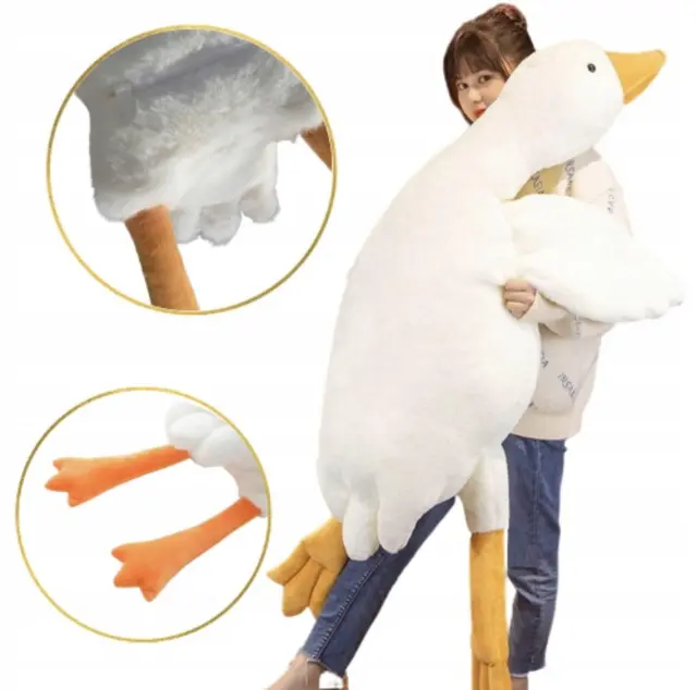 XXXL otroška plišasta igrača gos 130 cm je popolna izbira za vse, ki iščejo izjemno mehko in veliko igračo, ki bo zagotovo pritegnila pozornost otrok in odraslih. Ta ljubka plišasta gos je zasnovana z mislijo na udobje in zabavo, kar jo naredi idealno spremljevalko za igranje, crkljanje ali kot edinstven dekorativni kos v otroški sobi. Z visokokakovostnimi materiali in natančno izdelavo je ta igrača dolgotrajna, varna za otroke in izjemno mehka na dotik.Plišasta gos v velikosti 130 cm bo hitro postala najljubši prijatelj vašega otroka. Njena mehka površina in prijetno polnilo omogočata brezskrbno igro in udobje, obenem pa jo lahko uporabite tudi kot podporno blazino za dodatno udobje med spanjem ali počitkom. Zaradi svoje velikosti je idealna za crkljanje, kar bo otrokom zagotovilo občutek topline in varnosti. To je popolno darilo za rojstne dni, praznike ali kot presenečenje, ki bo pričaralo nasmeh na obrazih najmlajših.Plišasta gos je več kot le igrača – je čudovit dodatek, ki bo obogatil vsako otroško sobo s svojo prisotnostjo. Njena velikost in mehkoba jo naredita za edinstveno igračo, ki bo v veselje otrokom vseh starosti.Čudovita velika plišasta goska, ki bo vašega otroka popeljala v svet domišljije! Izdelan iz najkakovostnejšega mehkega materiala bo navdušil vašega malčka s svojim lepim videzom in prijetnim dotikom. Kot nalašč za crkljanje in igro, bo poskrbel za veliko veselja in čudovitih trenutkov.