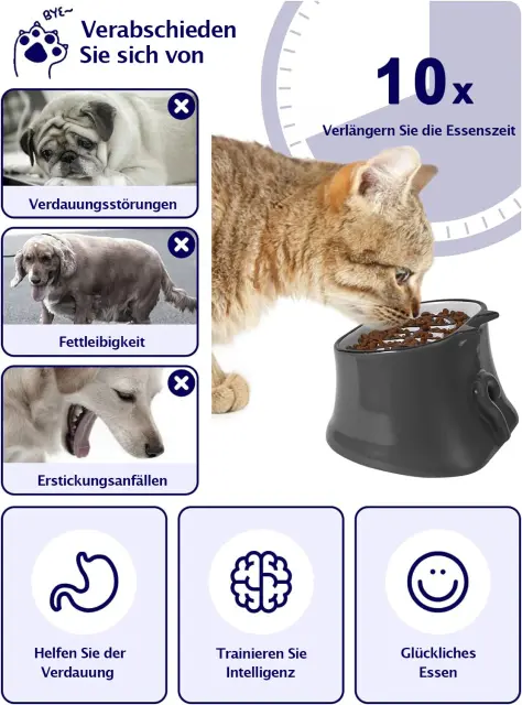 Ta dvignjena posoda za mačke učinkovito podaljša čas obroka in zmanjša obremenitev na želodcu, kar izboljša prebavo vašega ljubljenčka.