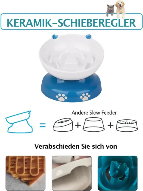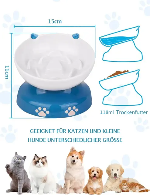 Y YHY posoda za mačke z počasnim hranjenjem, nagnjena zasnova, počasna hranilnica za pse in mačke za suho in mokro hrano, modra in bela