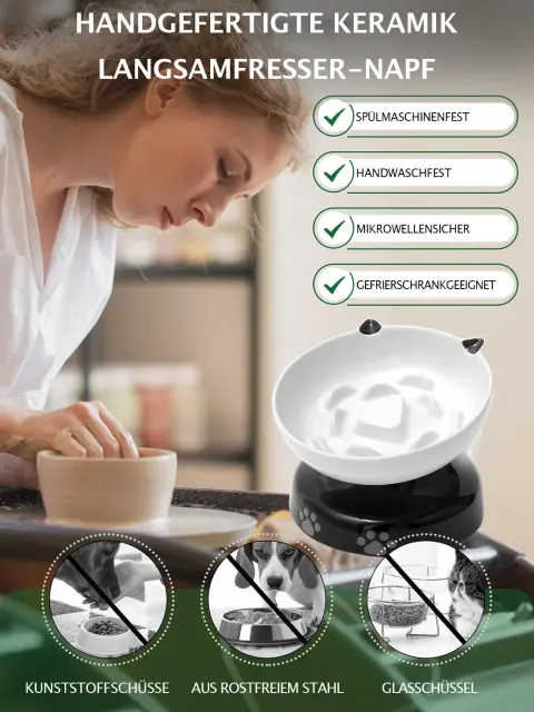 Ta posoda učinkovito preprečuje mačkam, da bi jedle prehitro, kar lahko povzroči zdravstvene težave, kot so: