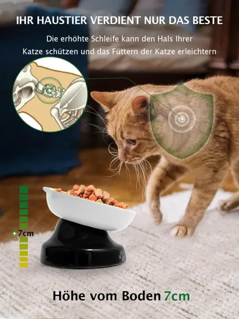 Posoda omogoča mačkam, da jedo v bolj naravni in udobni drži, kar: