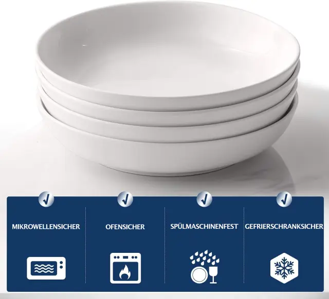 Y YHY sklede za testenine 946 ml, 21,6 cm, keramične solatne sklede, komplet belih skled za testenine, niz plitkih skled za juho 4, primerne za mikrov