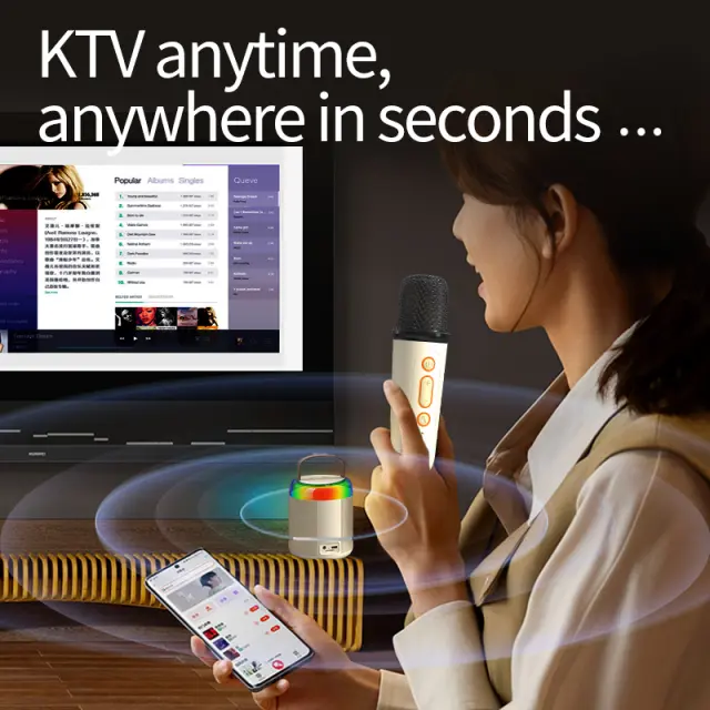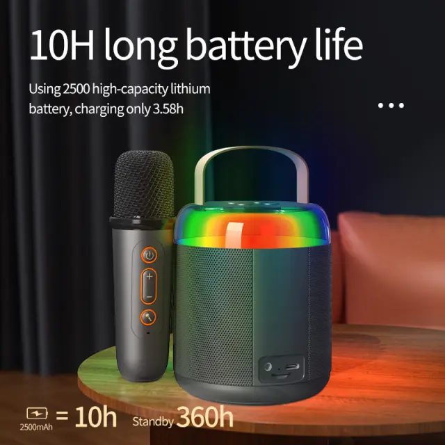 Dolg življenjska doba baterije: Uživajte v neprekinjenih karaoke seansah z visokozmogljivo baterijo. Mikrofon zagotavlja 3-4 ure predvajanja z enim polnjenjem, medtem ko se zvočnik ponaša z impresivno življenjsko dobo baterije, kar vam omogoča, da pojete in se zabavate vso noč.