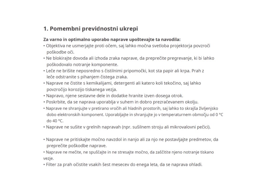 * Za najboljšo kakovost slike priporočamo uporabo v zatemnjenem prostoru in projekcijo med 40–120".
