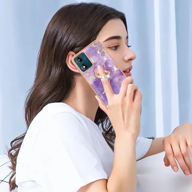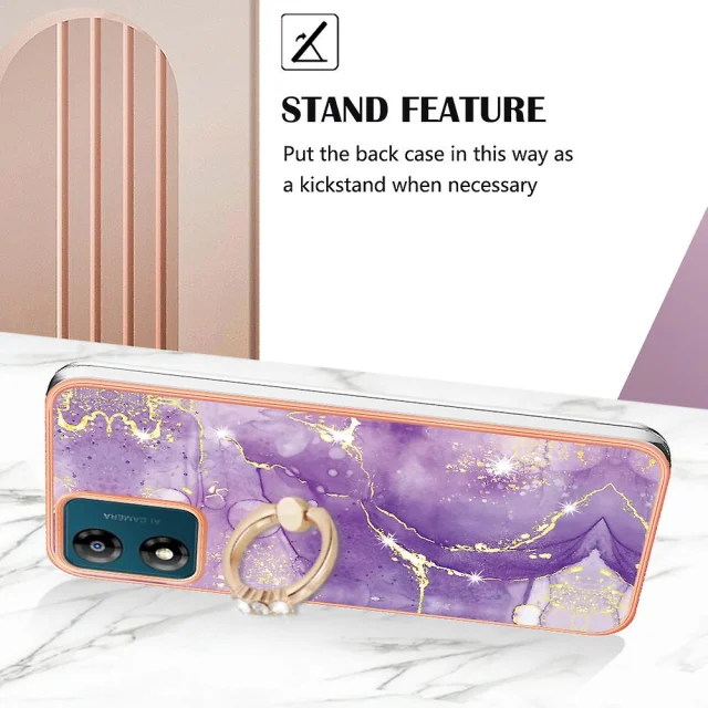 YB IMD Series-10 za Motorola Moto E13 4G mehka TPU torbica za telefon IMD marmorni zadnji pokrov s stojalom