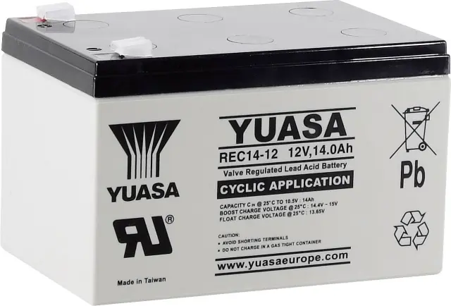 Yuasa REC14-12 YUAREC1412 svinčeni akumulator 12 V 14 Ah svinčevo-koprenast (ŠxVxG) 151 x 97 x 98mm ploščati vtič, 6,35mm nizko samopraznjenje, nizki