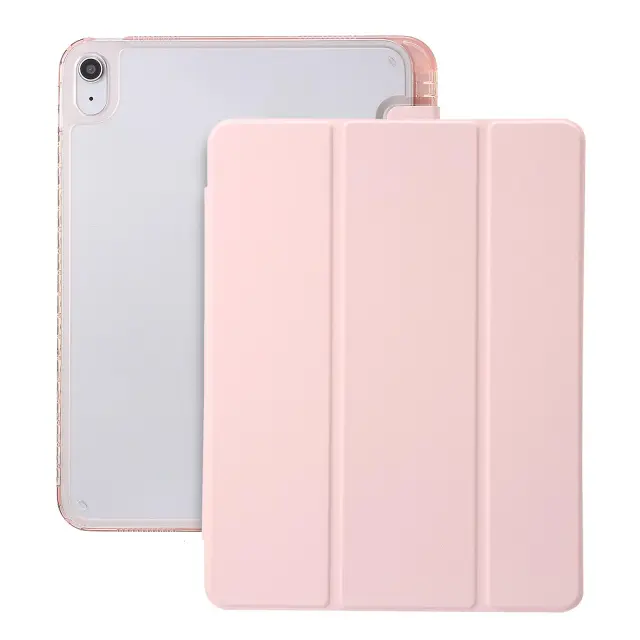 Za iPad 10.9 (2022) s tri-zložljivim stojalom, pametni ovitek iz PU usnja, prozoren akril + TPU ovitek za tablični računalnik