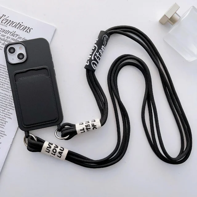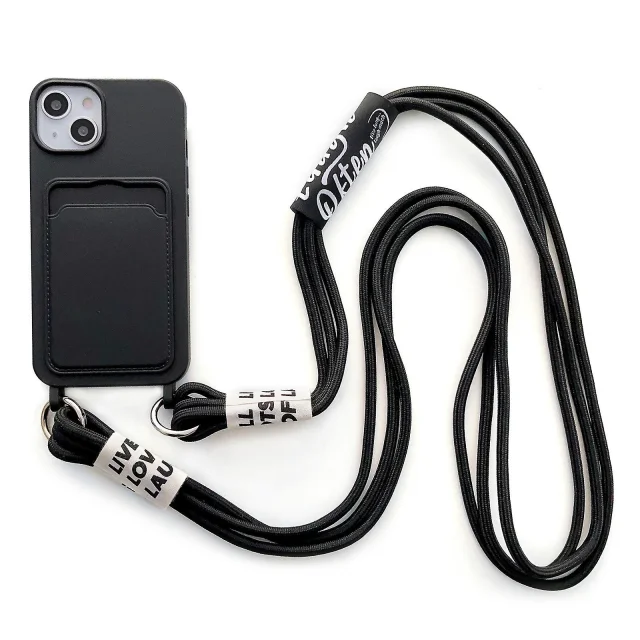 Za iPhone 13 6,1-palčni tekoči silikonski ovitek za telefon z režo za kartice, proti praskam in udarcem odporen ovitek z dolgim ​​trakom