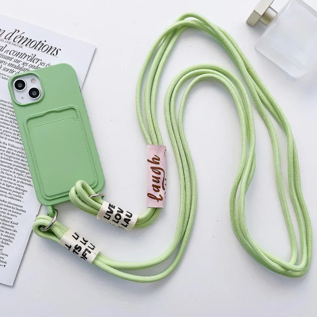 Za iPhone 13 6,1-palčni tekoči silikonski ovitek za telefon z režo za kartice, proti praskam in udarcem odporen ovitek z dolgim ​​trakom