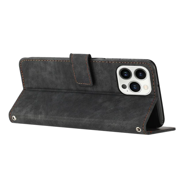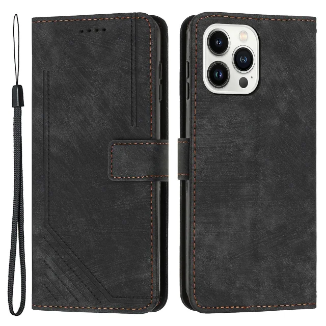 Za iPhone 14 Pro Max, etui s stojalom za telefon Skin-touch PU usnjena črtasta prevleka za denarnico