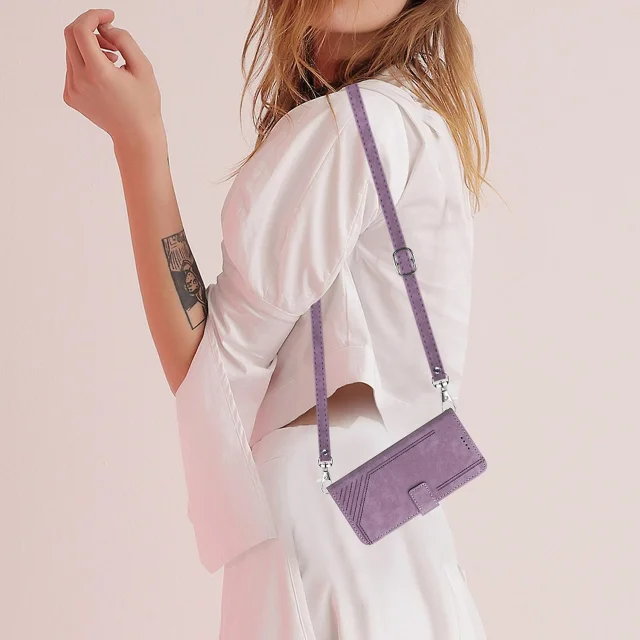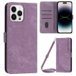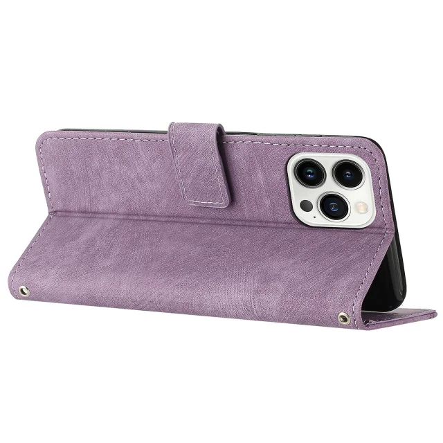 Za iPhone 14 Pro PU usnjena zaščitna prevleka na dotik s črtami in vtisnjenimi črtami za denarnico, folija za telefon