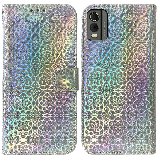 Za Nokia C32 PU usnjena denarnica na preklop, bleščeč cvetlični vzorec, zložljivo stojalo, pokrov za telefon